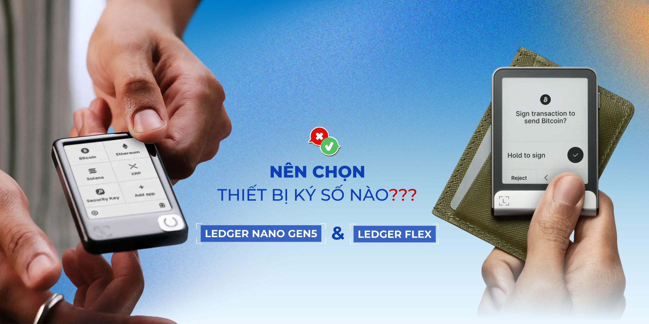 Khi nhu cầu bảo mật của thị trường blockchain đang ngày càng gia tăng, việc lựa chọn một thiết bị ký số đáng tin cậy trở thành ưu tiên hàng đầu. Ledger Flex và Ledger Nano Gen5 đều là những sản phẩm nổi bật hiện nay, mang đến giải pháp lưu trữ an toàn cho tiền điện tử và tài sản kỹ thuật số. Vậy giữa hai phiên bản này, thiết bị nào mới là lựa chọn phù hợp? Cùng DigiBit tìm hiểu ngay bây giờ nhé!