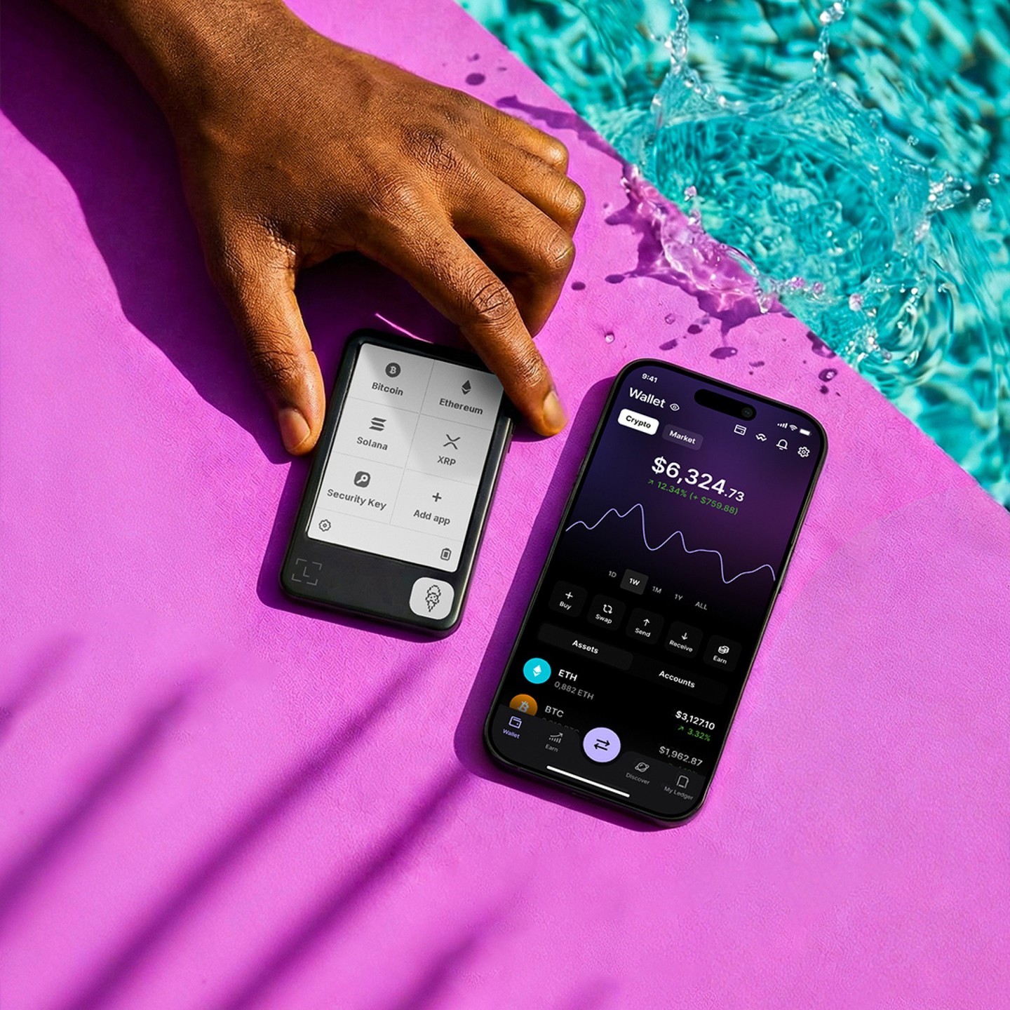 Không chỉ phục vụ việc theo dõi và ký giao dịch, màn hình cảm ứng của Ledger Flex còn cho phép người dùng cá nhân hóa thiết bị theo phong cách riêng. Bạn có thể tùy chỉnh hình nền hiển thị bằng bất kỳ hình ảnh yêu thích hoặc bộ sưu tập NFT nào, biến chiếc ví lạnh này thành một “tác phẩm nghệ thuật” đúng nghĩa. Đáng chú ý, nhờ đặc tính của công nghệ E-Ink, hình ảnh vẫn được giữ nguyên ngay cả khi thiết bị đã tắt, vừa tiết kiệm năng lượng vừa mang lại trải nghiệm thẩm mỹ ấn tượng.